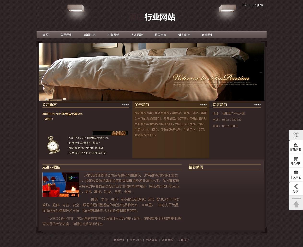 xx酒店管理有限公司系福建省規(guī)模最大、發(fā)展最快的旅游企業(yè)之一,經(jīng)營(yíng)效益和品牌美譽(yù)度均居福建省旅游業(yè)領(lǐng)先水平。作為富有航空特色的中高檔商務(wù)型連鎖專(zhuān)業(yè)酒店管理集團(tuán),廈航酒店依托航空業(yè)主,秉承 “真誠(chéng)、和諧、務(wù)實(shí)、創(chuàng)新”.